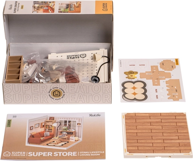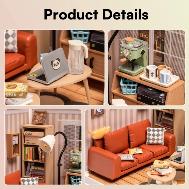 Vytvorte si vlastný kútik pohody s detailnou stavebnicou miniatúry od značky ROLIFE. Táto útulná obývačka v tlmených kávových tónoch ponúka LED osvetlenie, skrytú knižnicu a množstvo drobných doplnkov, ktoré potešia každého milovníka dizajnu, tvorenia a dekorácií. Ideálne ako dekorácia, darček aj relaxačný projekt pre deti od 8 rokov aj dospelých.
