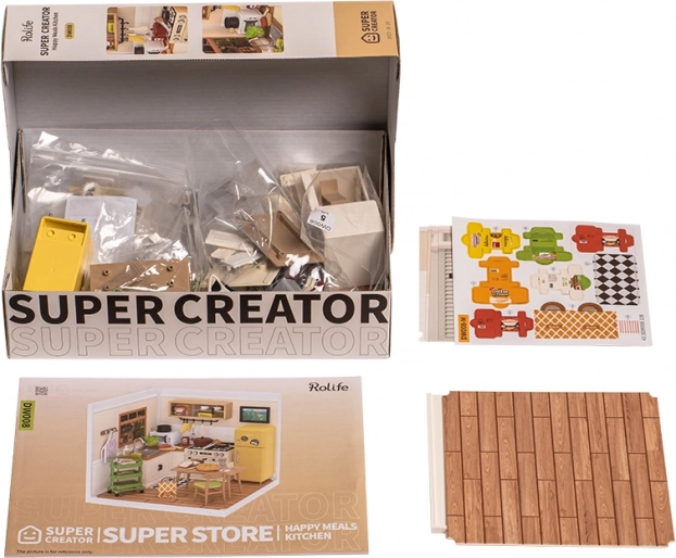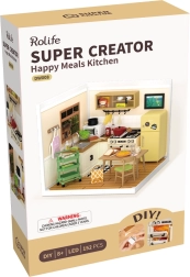 Postavte si vlastný útulný kuchynský kútik s miniatúrnou sadou ROBOTIME Happy Meals. Táto roztomilá stavebnica ponúka vintage dizajn, realistické detaily jedla, otvárateľnú rúru a chladničku aj LED osvetlenie pre dokonalú atmosféru. Ideálna ako kreatívny projekt a štýlová dekorácia do interiéru.