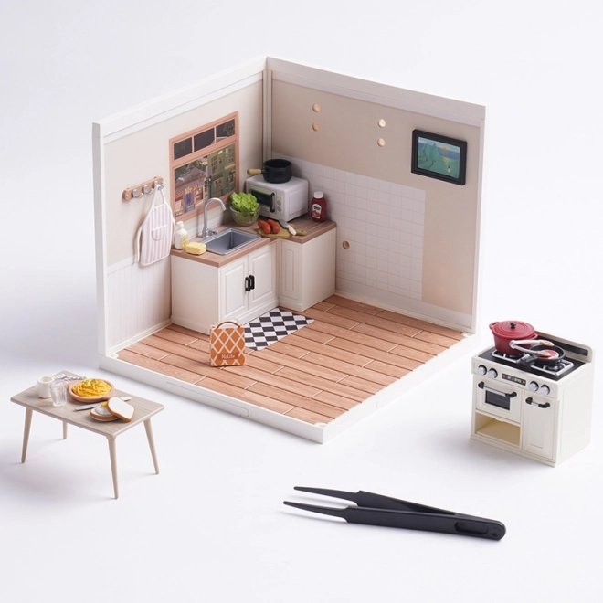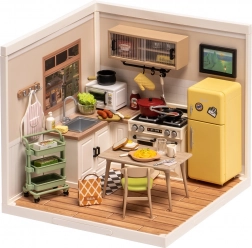 Objavte svet detailných miniatúr ROBOTIME a vytvorte si pohodovú kuchynku v tlmených farbách. Model zahŕňa sporák, skrinky, jedálenský nábytok a drobné doplnky, ktoré pôsobia prirodzene a autenticky. Vďaka LED osvetleniu vynikne každý detail a váš výtvor sa stane ozdobou poličky či pracovného stola.