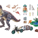 S hernou súpravou PLAYMOBIL Hon na T-Rexa sa deti prenesú do sveta dinosaurov. Bádateľka na motorke s postranným vozíkom sa vydáva na výpravu za stopami T-Rexa. Po ceste nachádza kostrové pozostatky a obrovskú stopu. Stretnutie s gigantickým T-Rexom je nevyhnutné. Táto súprava podporuje detskú predstavivosť a rolu hrania vďaka svojim detailom a pohyblivým častiam.