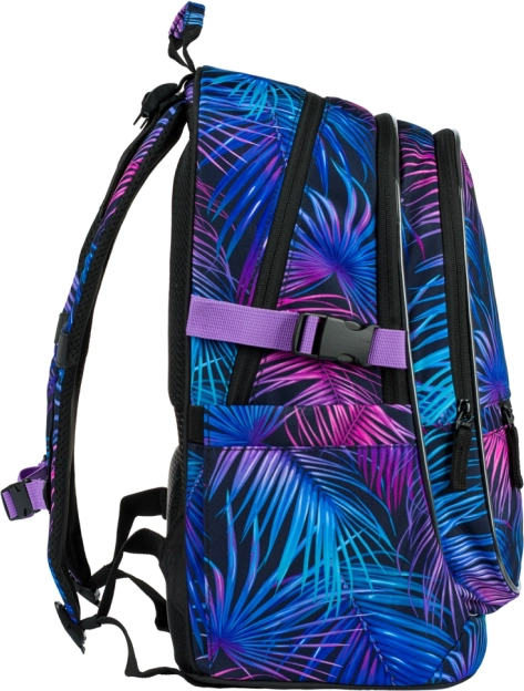 BAAGL Core Palm je navrhnutý tak, aby deťom uľahčil každý školský deň. Ergonomicky tvarovaný chrbát, plne nastaviteľné ramenné, hrudné a bočné kompresné popruhy zabezpečujú stabilné a zdravé nosenie. Do troch samostatne uzatvárateľných komôr sa zmestí všetko potrebné, praktický organizér a oddelené vrecko bezpečne pojmú aj 15'' notebook či tablet. Bočné pevné vrecká sú ideálne na fľašu s nápojom a drobnosti.