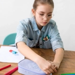 - Pevná etue – bezpečná ochrana pre ceruzky, pastelky aj doplnky.
