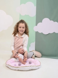Súčasťou sady je polstrovaný košík s jemnou podšívkou a brmbolcami. Ideálny na ukladanie, prenášanie aj štýlové vystavenie bábiky.