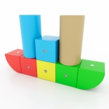 Dieliky z odolného bukového dreva majú oblé hrany a sú farbené ekologickými vodnými farbami, ktoré sú šetrné k deťom aj prírode.