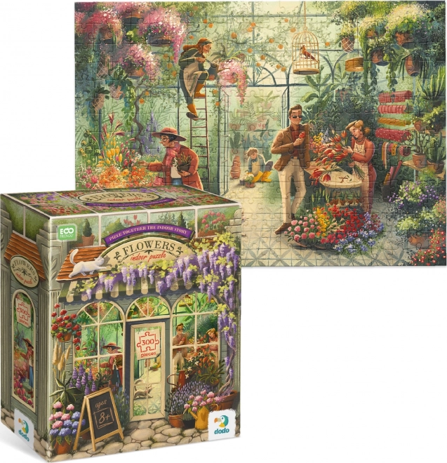 Užite si relax pri skladaní pôvabného motívu kvetinárstva z edície Obchodíky od značky DODO. Toto puzzle s 300 dielikmi prináša veselú ilustráciu plnú detailov, ideálne na odpočinok aj tréning sústredenia. Po poskladaní má rozmer cca 39 × 28 cm, takže sa skvele hodí na vystavenie alebo opätovné skladanie.
