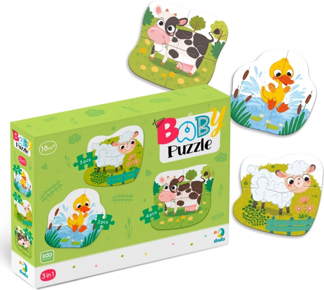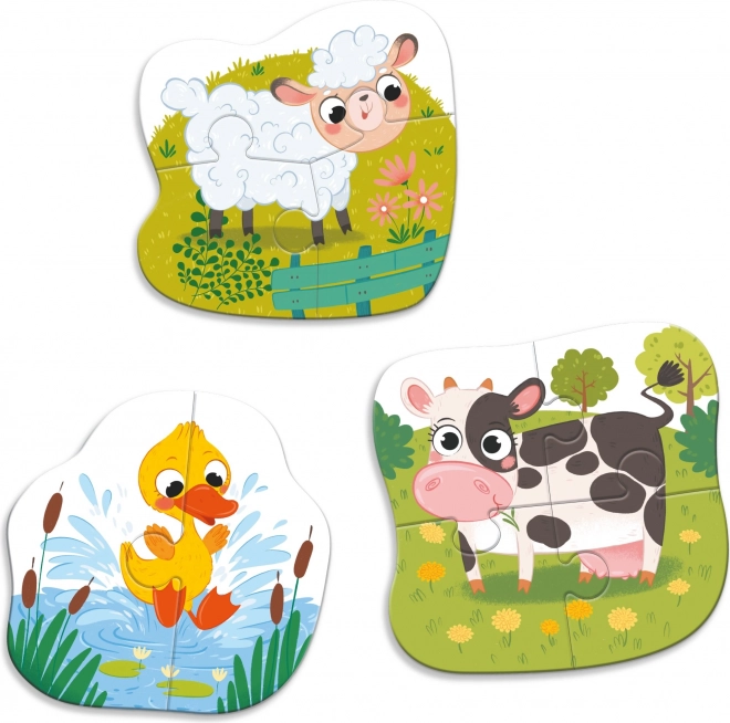 Táto sada obsahuje tri samostatné obrysové puzzle s motívmi zvieratiek z farmy, každé s iným počtom dielov (2, 3 a 4). Vďaka postupnej náročnosti je ideálna na prvé skladanie, posilňuje sústredenie a prináša deťom radosť z úspechu.