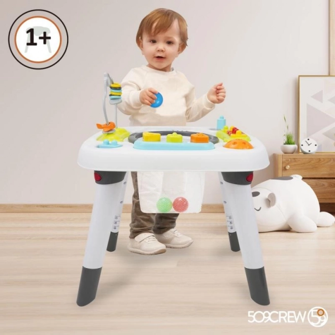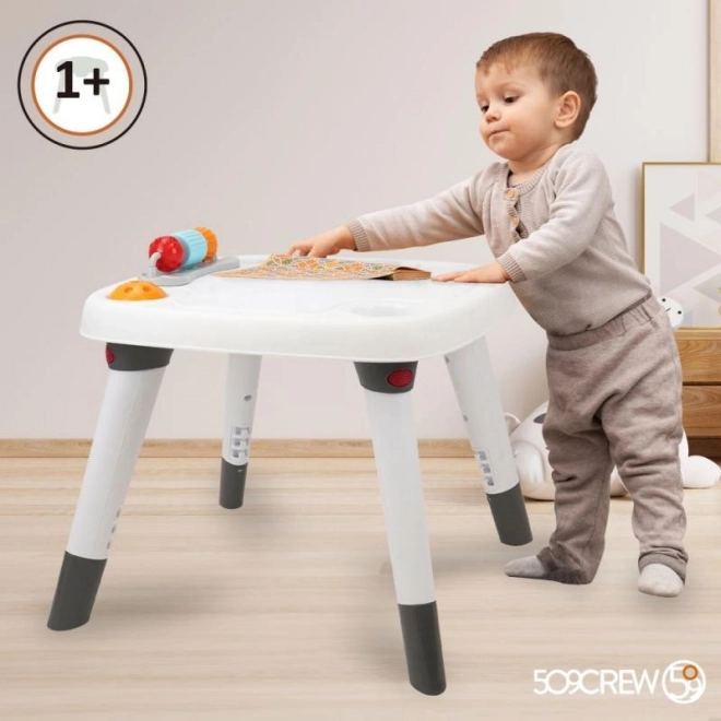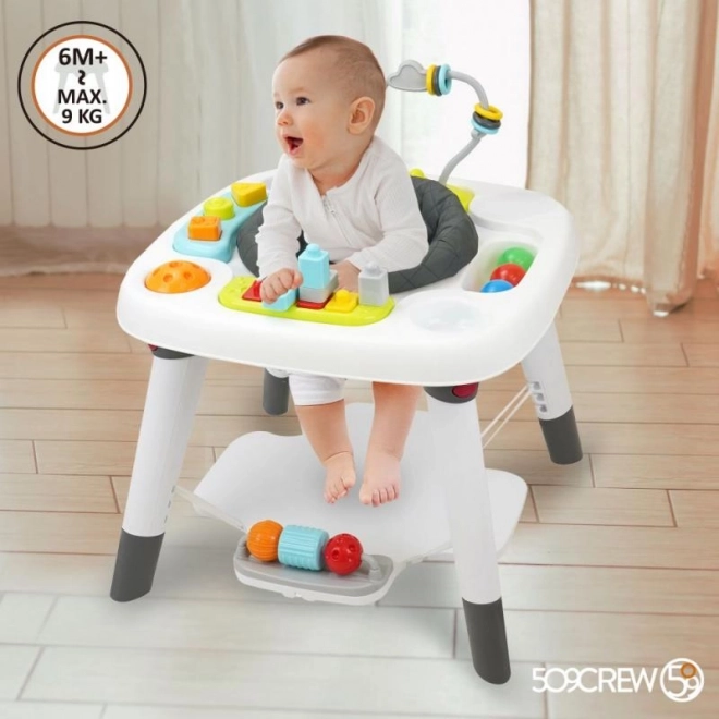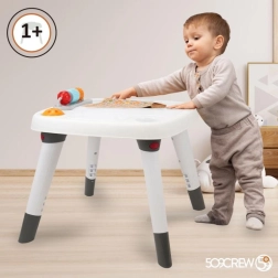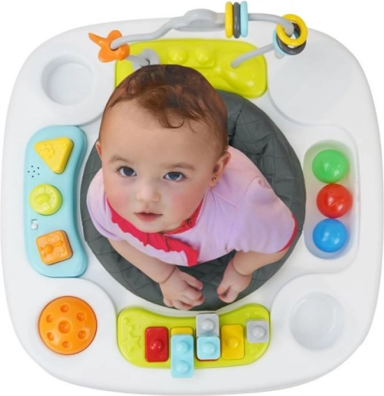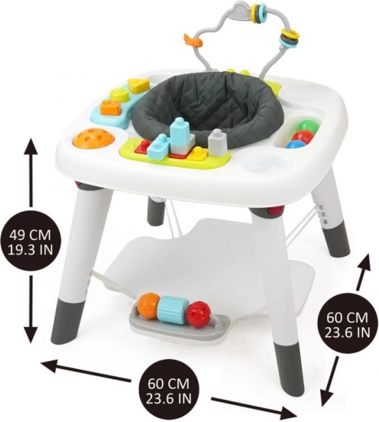 Interaktívny herný stôl pre deti 3v1 je viac než len hračkou. V prvej fáze dieťa môže skúmať svet okolo seba z pohodlia sedadla s hračkami, ktoré sú ľahko dosiahnuteľné. Druhá fáza prináša zábavu pri učení sa chodiť a komunikovať s interaktívnymi a farebnými hračkami usporiadanými okolo stola. Tretia a posledná fáza premieňa stôl na funkčný kus nábytku, ktorý môže slúžiť na hru, jedlo alebo iné kreatívne aktivity.