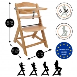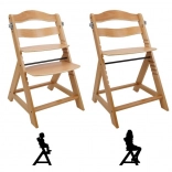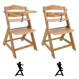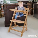 Drevená vysoká stolička, ktorá rastie spolu s dieťaťom. Vrátane dreveného predného tácka, prednej tyče a rozdelenia rozkroku – u starších detí je možné tieto časti zložiť a prerobiť na bežnú stoličku aj pre dospelých. Viacstupňové nastavenie výšky sedadla aj opierky nôh. Opierku nôh je možné úplne demontovať.