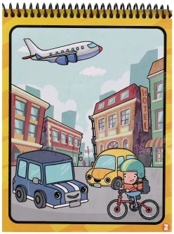 Sada obsahuje štyri znovupoužiteľné obrázkové stránky s dopravnými prostriedkami, ktoré poskytujú hodiny zábavy a kreatívneho vyžitia pre vaše dieťa.