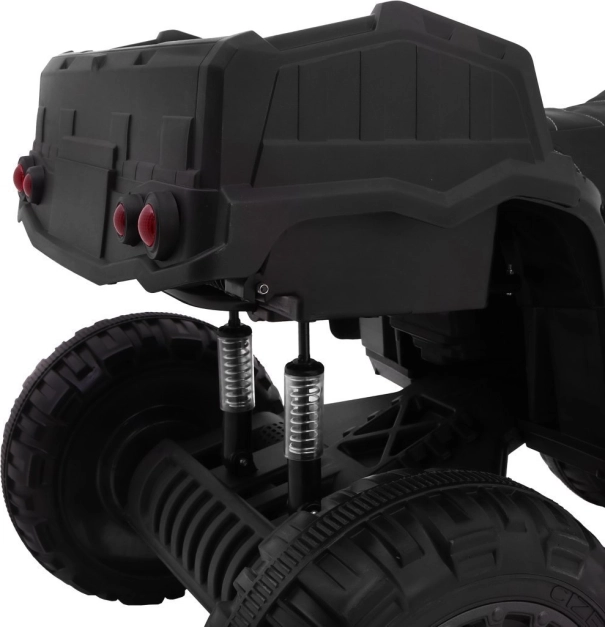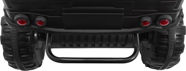 Pre komfort a stabilitu má stroj odpruženie 2× vpredu a 2× vzadu so zosilnenými pružinami. Dieťa si užije 2 rýchlosti vpred a spiatočku, zatiaľ čo rodičia ocenia diaľkové ovládanie 2,4 GHz s funkciou STOP a voľbou 3 rýchlostí. Nechýbajú predné LED svetlá s vypínačom, audio panel s MP3/USB/TF (microSD)/FM/AUX, prednahrané melódie a klaksón. Praktická je zadná korba 43 × 20 cm a sklopná transportná rukoväť pre jednoduché prenášanie. Maximálne zaťaženie je 40 kg, sedadlo z čiernej eko kože (36 × 21 cm) ponúka pohodlie aj pri dlhšej jazde.