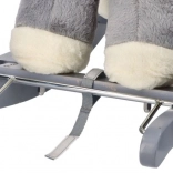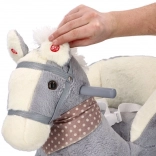Sivý plyšový koník s komfortným sedadlom je skvelou voľbou pre deti, ktoré milujú hojdanie aj vychádzky. Drevené lyžiny so zaoblenými hranami a madlá zabezpečujú stabilitu, zatiaľ čo mäkké polstrovanie poskytne pohodlie aj pri dlhšej zábave. Integrovaná priehradka na batérie (pod bruškom koníka) umožňuje zapnúť zvukové či svetelné efekty podľa modelu.