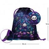 Objavte praktický a trendový vak na chrbát s motívom pánd a kvetov. Vďaka odolnému, umývateľnému materiálu je ideálny na obuv, športové vybavenie aj drobnosti do školy alebo na krúžky. Farebný dizajn v odtieňoch fialovej, modrej a zelenej zaujme na prvý pohľad.