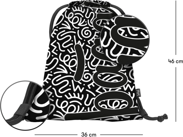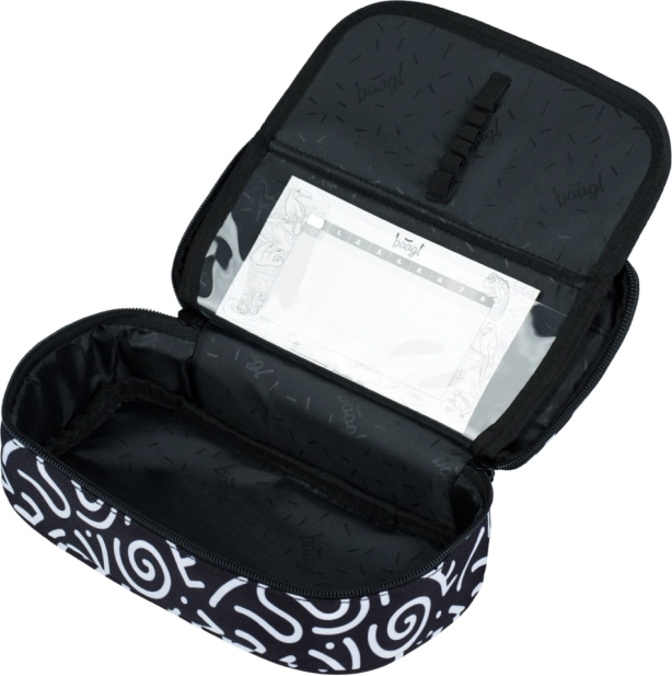 Peračník typu etue s výklopnou prepážkou, vreckom na zips a miestom na rozvrh udržiava poriadok vo všetkých drobnostiach. Vrecko s pevnými šnúrkami je odolné a umývateľné, takže je pripravené na krúžky aj telesnú výchovu.
