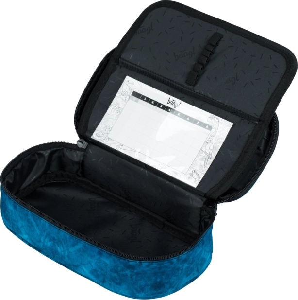 Pevný peračník s výklopnou prepážkou, vreckom na zips a miestom na rozvrh (bez náplne) a umývateľné vrecko so sťahovaním na chrbát pre obuv aj športovú výbavu.