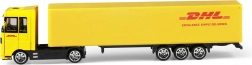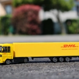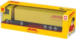 Tento kamión je detailne spracovaný, aby čo najvernejšie napodobnil skutočné doručovacie vozidlo DHL, vrátane výraznej žltej farby a loga.