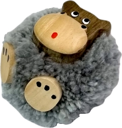 Táto originálna magnetka s motívom hrocha je vyrábaná a domalovávaná ručne. Telo zdobí hebký bavlnený brmbolec, zatiaľ čo tvár a detaily vznikajú z prirodzene rôznofarebných exotických drevín – chlebovník rôznolistý (žltý), tamarind manilský (svetlohnedý), kasia obyčajná (tmavohnedá), aniba (ružová) a gmelina arborea (biela). Drevo nie je farbené; farebnosť je daná samotnou štruktúrou drevín.