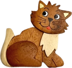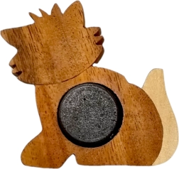 Originálna drevená magnetka v tvare mačky je vyrábaná a domalovaná ručne, vďaka čomu je každý kus jedinečný. Kombinácia rôznofarebných drevín zvýrazňuje prirodzenú krásu materiálu a dodáva magnetke teplý, prírodný vzhľad.