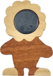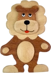 Táto elegantná drevená magnetka leva vyniká precíznym remeselným spracovaním a prírodnou estetikou. Každý kus je jedinečný vďaka kombinácii až piatich druhov dreva s vlastnými odtieňmi – výsledkom je harmonická, prirodzene farebná dekorácia bez plošného farbenia.
