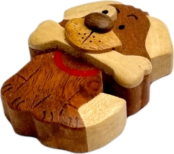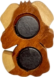 Táto veľká drevená magnetka s motívom psíka s kosťou kombinuje poctivé remeslo a prírodné materiály. Každý kúsok je starostlivo skadaný z rôznofarebných drevín a iba ručne domalovaný – bez plošného farbenia, aby vynikla prírodná kresba dreva.