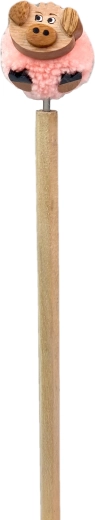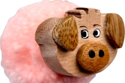 Mäkký ružový pompom s drevenou hlavičkou prasiatka dodáva peru osobitý vzhľad a poteší malých aj veľkých milovníkov zvierat.