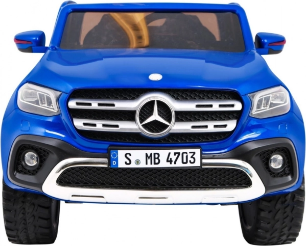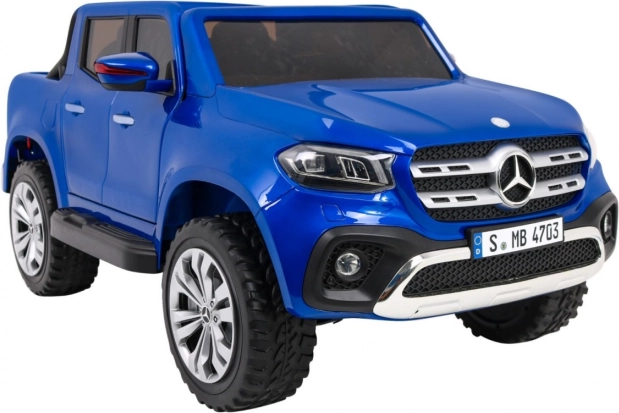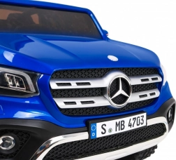 Licencovaný model MERCEDES-BENZ X‑Class prináša deťom autentický zážitok z jazdy. Výkonná zostava 4 × motory 45 W (RS 550PH, 10 000 RPM) s prepínačom pohonu 2WD/4WD si poradí s nerovným terénom, vysoký svetelný podvozok 17,5 cm a dve zadné tlmiče pridávajú komfort a stabilitu. Dvojica akumulátorov 2 × 12 V / 7 Ah predlžuje dobu jazdy.