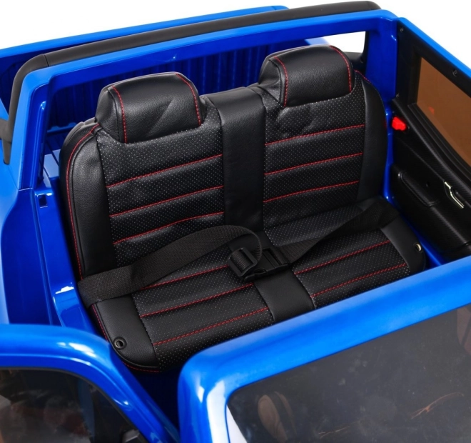 Diaľkový ovládač 2,4 GHz s 3 rýchlosťami a tlačidlom STOP, plynulý rozjazd, pásy na sedadle z eko kože a zadné tlmiče pre pokojnú jazdu.