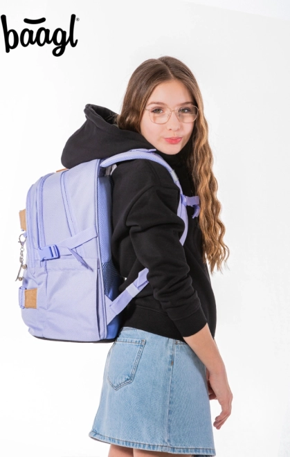Fialový školský batoh s mačkou a hrudným pásom 20L