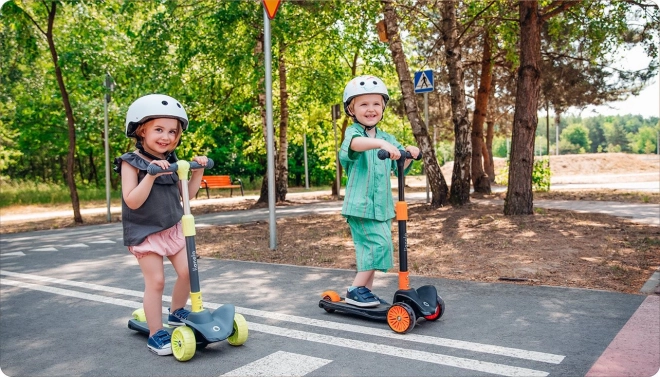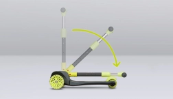 Pripravená na jazdu - kolobežka nevyžaduje montáž, po vybratí z obalu ju dieťa môže ihneď používať. Možno zložiť riadidlá a použiť ich ako úchyt na prenášanie.