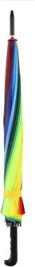 Tento dáždnik sa pýši vystreľovacím otváraním, ktoré zaisťuje rýchle a pohodlné použitie. Je vyrobený z kvalitných materiálov - kovu a látky, čím poskytuje dobrú stabilitu a dlhú životnosť. Jeho dúhový dizajn urobí z daždivého dňa príjemnú skúsenosť.