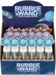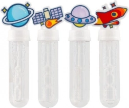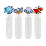 Každý bublifuk má viečko s rôznymi vesmírnymi motívmi ako planéta, satelit, UFO alebo raketa.