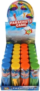 Priehľadná valcovitá tuba chráni hračku a uľahčuje prenášanie. Vezmite parašutistu kamkoľvek – na ihrisko, k babičke aj na dovolenku.