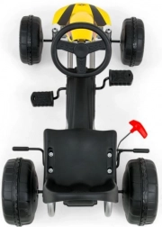 Šliapací go-kart Milly Mally Viper je navrhnutý pre malých pretekárov, ktorí milujú rýchlu jazdu a bezpečnú zábavu vonku. Oceľový rám spevnený vzperami, ergonomický tvar a realistický športový vzhľad robia z tohto modelu ideálnu voľbu na každodenné vychádzky.
