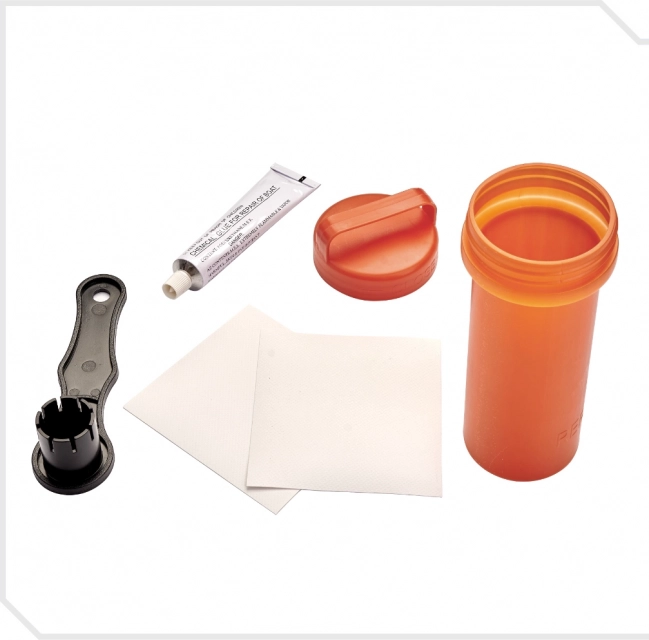 - Opravná súprava, vrátane dvoch záplat, lepidla a kľúča k ventilu