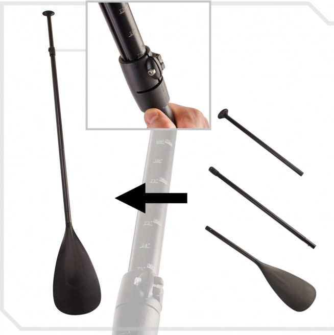 - Veslo s reguláciou dĺžky, umožňujúce plávanie vo stoji i v sede