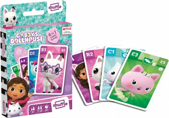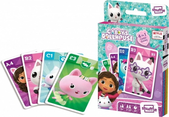 Hra Kocúrikov dom Shuffle 4 v 1 posunie obvyklé balenie kariet na inú úroveň. Najznámejšie kartové hry s obľúbenými postavičkami z Kocúrikovho domu. Tento jediný výrobok vám navyše poskytne hodiny zábavy, pretože si môžete zahrať štyri rôzne hry. Kvarteto, akčná hra, Čierny Peter a Snap sú receptom na to, aby ste sa nenudili.