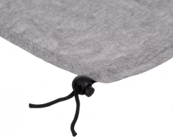 Inštalácia je rýchla a intuitívna – gumičku pretiahnete cez striešku a šnúrkami so stopermi upevníte k rámu kočíka. V balení nájdete kompaktné puzdro so zapínaním na suchý zips, ktoré nezaberie miesto v košíku ani v prebaľovacej taške.