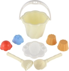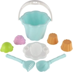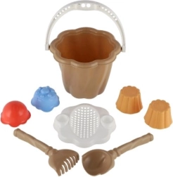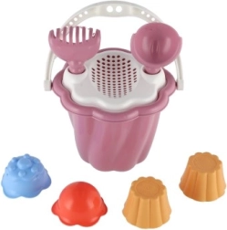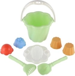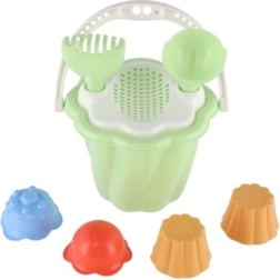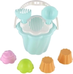 Tento set zahŕňa vedierko, lopatku, hrabličky a štyri formičky, ideálne pre nekonečné hodiny hry na pieskovisku alebo pláži.