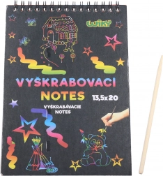 Stierateľný blok je ideálny pre malých umelcov, ktorí chcú objaviť svoje kreatívne schopnosti. Špeciálna čierna vrstva na každom liste skrýva farebný podklad, ktorý sa objaví pri odstránení vrstvy pomocou priloženého dreveného paličky.