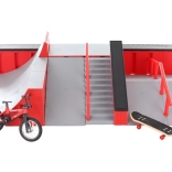 Užite si zábavu s miniatúrnym skateparkom vrátane rámp, skateboardu a kolobežky. Ideálne pre ručné triky a simuláciu skejtovania.