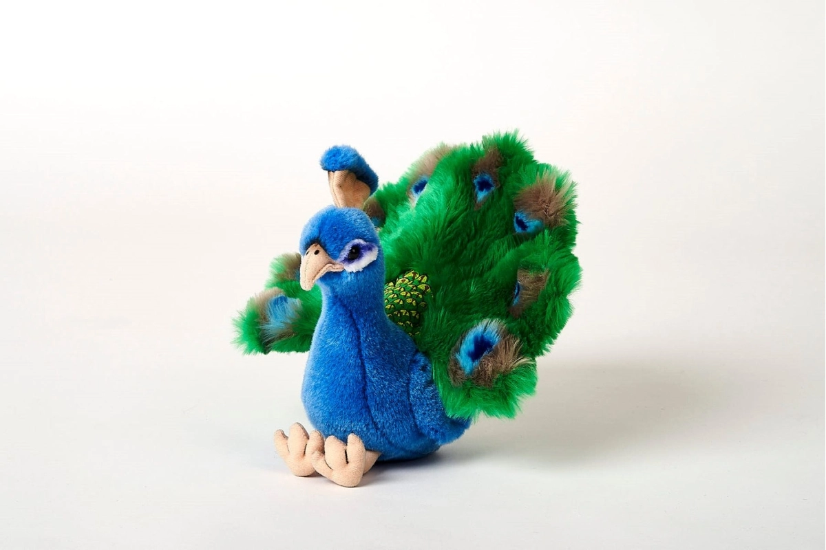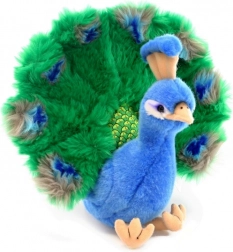Tento plyšový páv vyniká jemnou, hebkou srsťou a výraznými farbami, ktoré zaujmú na prvý pohľad. Veľkosť 25 cm je perfektná pre detské rúčky aj pohodlné objímanie. Kvalitné spracovanie a bezpečné švy zabezpečujú dlhú životnosť hračky.