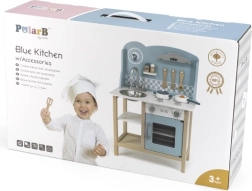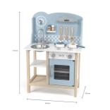 Premyslená drevená kuchynka v polárnych odtieňoch kombinuje nadčasový dizajn s kvalitným spracovaním. Deti v nej nájdu všetko, čo poznajú zo skutočnej kuchyne – drez, rúru, varnú dosku a digestor – a navyše praktický úložný priestor s poličkou na potraviny a riad. Povrch je lakovaný netoxickými, bezpečnými farbami a všetky hrany sú hladké pre bezpečnú hru.