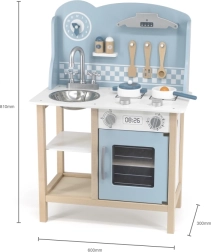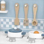 Deti majú po ruke drez, rúru, varnú dosku a digestor – všetko v robustnom drevenom prevedení s praktickým úložným priestorom. Ideálne na každodenné kulinárske dobrodružstvá.
