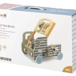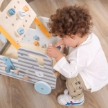 Tento pojazdný ponk v tvare auta kombinuje pracovný stôl s interaktívnou stavebnicou. Všetko je vyrobené z dreva a prispôsobené malým rukám, aby si deti mohli bezpečne vyskúšať prácu s nástrojmi. Sada povzbudzuje zvedavosť, trpezlivosť a podporuje koordináciu ruka–oko.