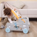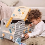 Pracovný stôl s náradím, ktorý si deti ľahko odvezú. Vozík s úložným priestorom učí poriadkumilovnosti a podporuje samostatnú hru.