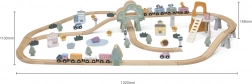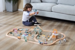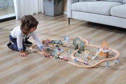 Obsiahla sada zahŕňa koľaje, vyvýšeniny, most, vláčik s vagónikmi aj množstvo doplnkov. Deti ľahko menia trasy a vytvárajú nové príbehy pri každom hraní.