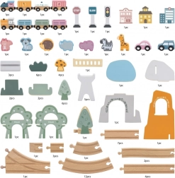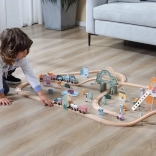 Hra je bezpečná a odolná: hladké hrany, farby na vodnej báze a masívne drevo sú šetrné k deťom aj prírode. Pri manipulácii s koľajami a doplnkami si deti precvičujú koordináciu oko–ruka, logické myslenie a spoluprácu pri spoločnej hre.