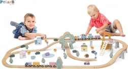 Objavte svet fantázie s drevenou vláčikodráhou POLARB. Sada obsahuje 90 starostlivo spracovaných dielikov: rovinky a zákruty, vyvýšeniny a most, vláčik s vagónikmi, dopravné značky, domčeky, vozidlá, zvieratká, stromy aj skaly. Vďaka jednoduchému spájaniu možno zostaviť nespočet tratí a scén, ktoré deti stále menia a rozširujú.