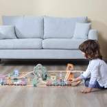 Ukladanie koľají, presúvanie vláčika a rozmiestňovanie prvkov rozvíja koordináciu, logiku aj kreatívne myslenie – ideálne na samostatnú aj spoločnú hru.