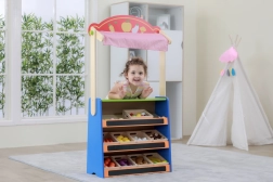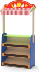 Stánok ponúka prehľadné police na uloženie potravín a doplnkov (predávajú sa samostatne). Robustné prevedenie, atraktívne farebné detaily a markíza vyzývajú k tvorivej hre a spoločným aktivitám. Hračka rozvíja predstavivosť, kreativitu, logické myslenie a komunikáciu.