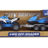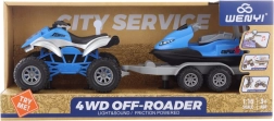 Táto detailne spracovaná štvorkolka s prívesom a skútrom prináša deťom množstvo akcie a fantázie. Vďaka svetelným a zvukovým efektom je hra ešte realistickejšia a pútavejšia. Súčasťou je príves na prevoz skútra, takže si deti môžu vytvárať vlastné príbehy a dobrodružstvá.